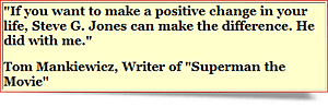 I had heard about Steve in the self-improvement circuit and knew he had worked with some famous people like Tom Mankiewicz, who wrote the movie Superman and