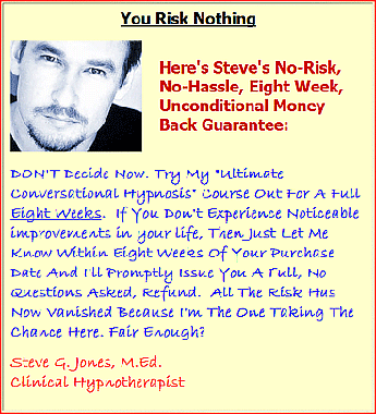 Then I came across Steve G. Jones, M.Ed. and what was then a very “rough draft” of what later developed into his Ultimate Conversational Hypnosis course.